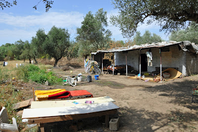 Την πρώτη μας επίσκεψή μας την κάναμε σ' ένα πρώην στάβλο ζώων, σε κάποιο χωράφι της Μερόπης, όπου έχουν βρει καταφύγιο 4 λαθρομετανάστες Αφγανοί. Η όλη εικόνα ήταν σοκαριστική. Δυο αδύνατες ξαπλωμένες σιλουέτες σηκώθηκαν από την γη και μας κοίταξαν. Τους εξηγήσαμε το λόγο της επίσκεψής μας. Απογοητεύτηκαν. Περίμεναν ότι θα τους προσφέραμε εργασία. Δέχτηκε να μας μιλήσει ο Αλή.
